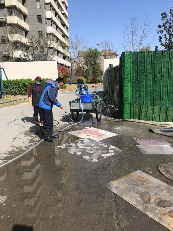 保潔員們依序清洗滿地業(yè)主的地墊,管家們在一旁與業(yè)戶分享清洗地墊、雜物的小妙招。